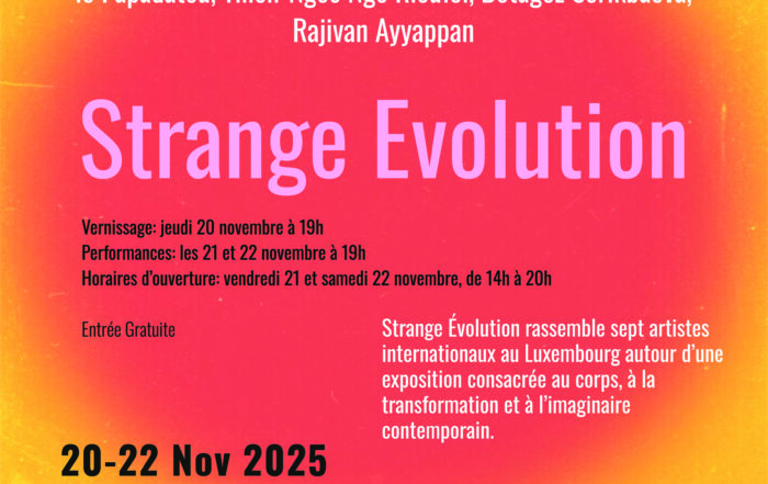 EXPOSITION STRANGE EVOLUTION Strange Évolution rassemble sept artistes internationaux au Luxembourg autour d’une exposition consacrée au corps, à [...]